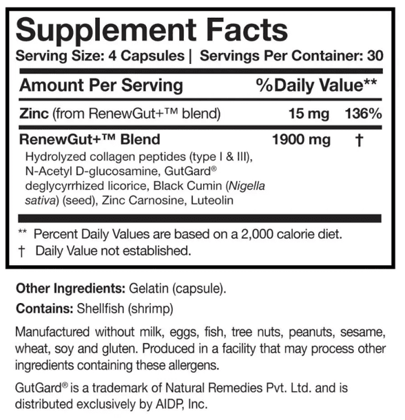 Comprehensive support for optimal gut health* RenewGut+™ combines multiple mechanisms of action to support tight junctions, strengthen the gut lining, nurture the mucin layer, and promote optimal digestive function.*